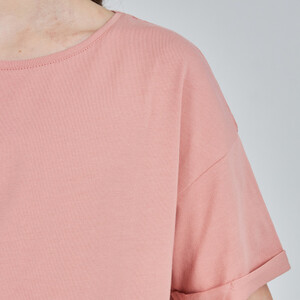 Базовая футболка OVERSIZE из натурального хлопка с добавлением эластана. Модель имеет свободную посадку и рукав с отворотом. Футболку можно носить навыпуск или заправлять.