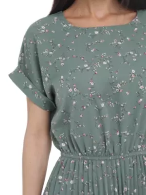 Легкое летнее платье свободного облегания с невероятно популярной в этом сезоне юбкой гофре. Отлично подойдет на любую фигуру. Платье отрезное по талии и по шву собрано на резинку. Горловина обработана обтачкой. Рукава цельнокроенные короткие с манжетой.