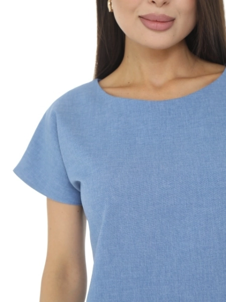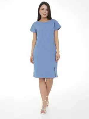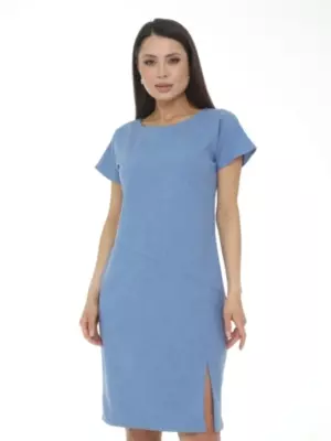 Стильное платье футляр с цельнокроеными рукавами и пикантным разрезом, полуприлегающего фасона сделает фигуру стройнее. Спинка из двух частей. Перед имеет диагональную отрезную часть и разрез.Вырез горловины обработан внутренней обтачкой. Модель выполнена из вискозной ткани "под лен".
