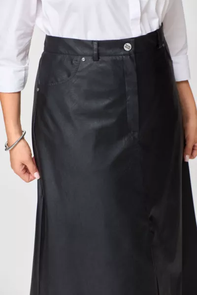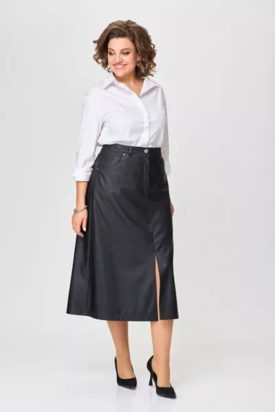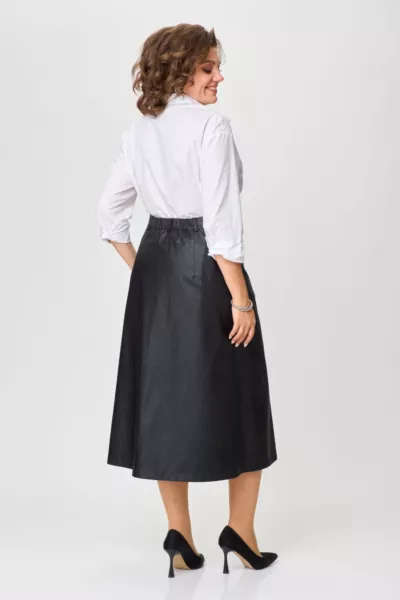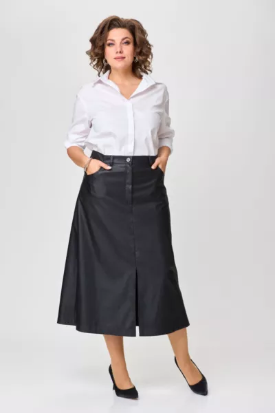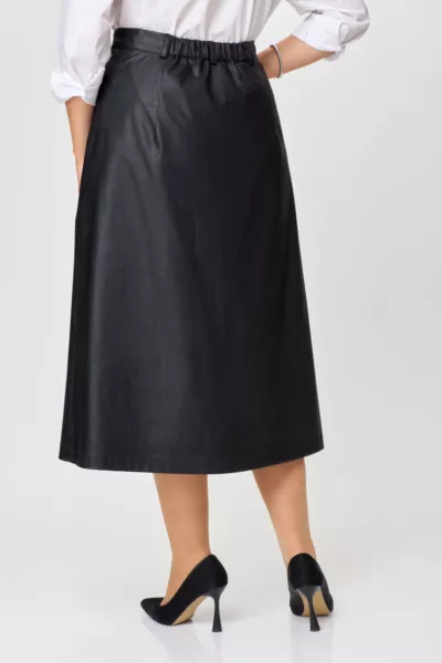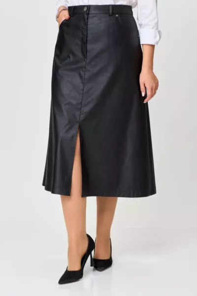 Юбка А-образного силуэта, длиной ниже колена, выполнена из экокожи. Юбка на подкладке.