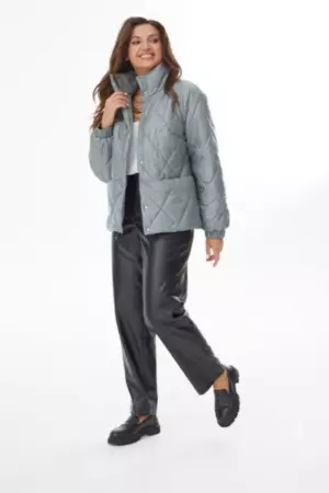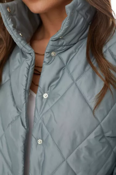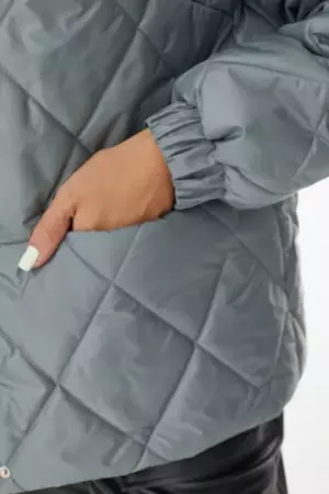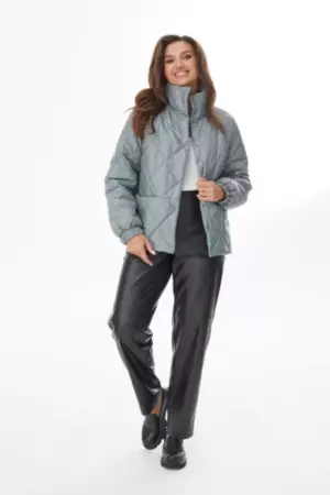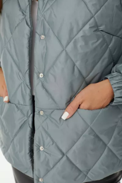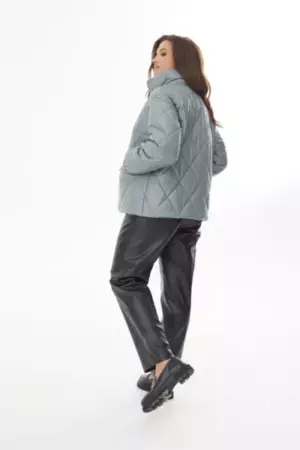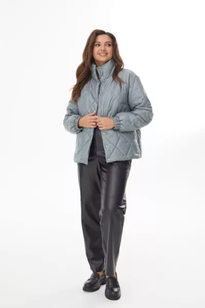Куртка женская прямого силуэта с воротником стойкой из стеганой ткани на утеплителе. Подходит для осени. Спереди горизонтальные рельефы, в которых находится вход в карман. Рукав втачной одношовный, снизу собран на резинке. Внутри куртки понизу кулиса, в которую вдета круглая резинка с фиксаторвми. Застегивается на кнопки.
