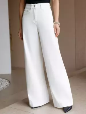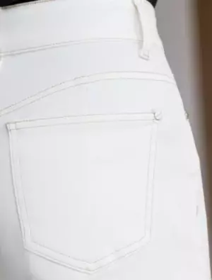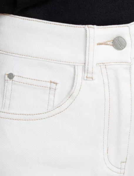 Джинсы-трубы выполнены из эластичного денима. Модель в теплом белом оттенке дополнена контрастными бежевыми строчками. Посадка на талии и свободный крой подчеркивают фигуру и вытягивают силуэт. Изделие дополнено фирменным патчем.