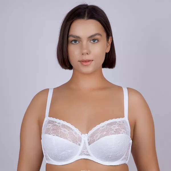 Бюстгальтер из неэластичного кружева, нижняя часть чашки на дубляже, боковые детали из эластичного полотна. Боковые детали уплотнены упругими пластинами