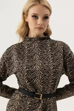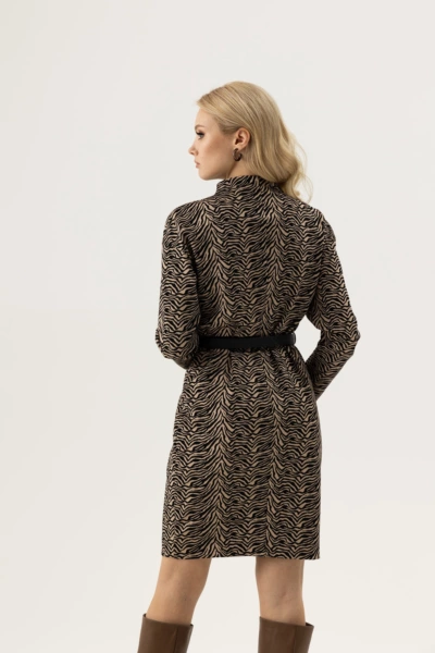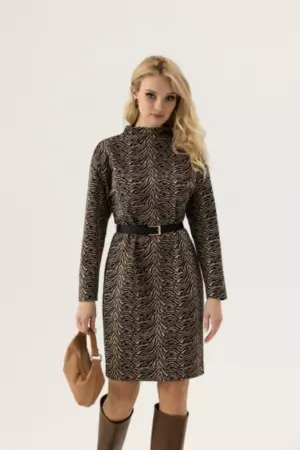 Бренд: FEMME. Цвет: 34 Принт. Состав: 65% полиэстер, 24% вискоза, 6% полиамид, 5% полиуретан. Сезон: Осень-Зима. Доставка курьером по РФ. Женское платье без подкладки зауженное книзу длиной до линии колен.Модель со спущенной линией плеча и горловиной-стойкой.Рукав заужен книзу длиной 7/8.Такая модель платья идеально садится на любой тип фигуры,стройнит, визуально вытягивает силуэт,а съемный элегантный пояс подчеркнет Вашу тонкую талию.Модель приятная к телу, из дышащей ткани, не электризуется, хорошо сохраняет цвет и форму, не прихотливо в уходе.