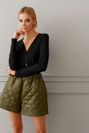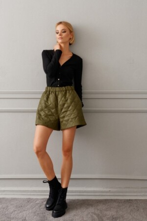 ОПИСАНИЕ: Шорты утепленные А образного силуэта выполнены из фактурной ткани цвет а хаки. Шорты прекрасно дополнят ваши повседневные современные образы, сочетаются с рубашкой, блузой , футболкой.