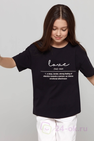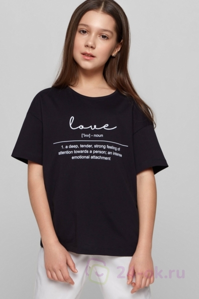 ID товара: 930175, Состав: Хлопок 100%, Сезон: Весна/Лето, Длина: Средняя, Фасон: Оверсайз, Рукав: короткие, Вырез горловины: Округлый, Рисунок: Надпись, Основная ткань: Хлопок, Стиль: Повседневный, Страна бренда: Беларусь, Страна производства: Европа Футболка для девочки CONTE ELEGANT DD 1247, р.98,104-52, black
