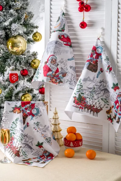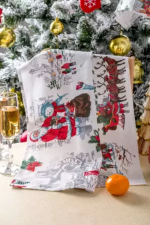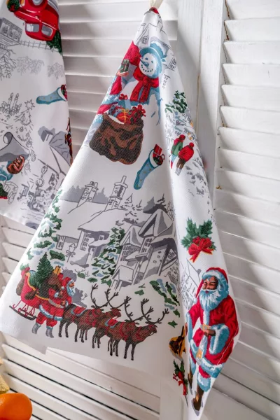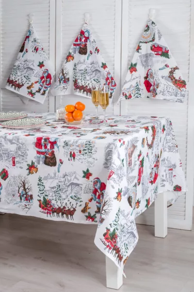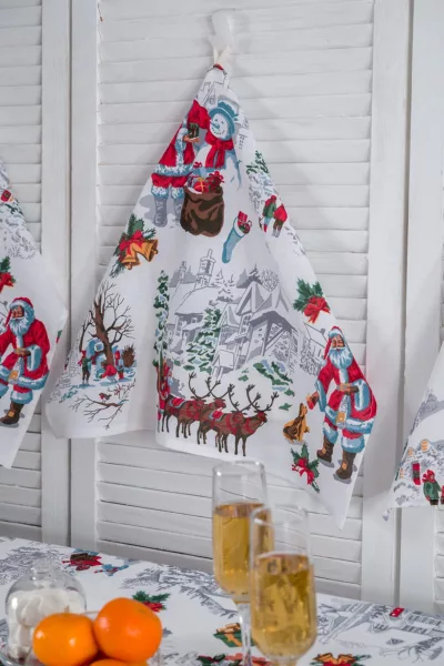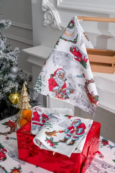 ID товара: 912636, Состав: 100% Хлопок, Сезон: Весна/Лето, Вид ткани: Рогожка, Страна бренда: Россия, Страна производства: Россия Набор из трех кухонных полотенец с изображением Санта Клауса и другой новогодней атрибутикой станет отличным украшением кухни. Стильный Новогодний рисунок на полотенцах подарит ощущение настоящего праздника. В наборе три полотенца из рогожки размером 48*60 см к каждому пришита петелька. Полотенца Снежная зима можно сочетать со скатертью Снежная зима, продается отдельно.