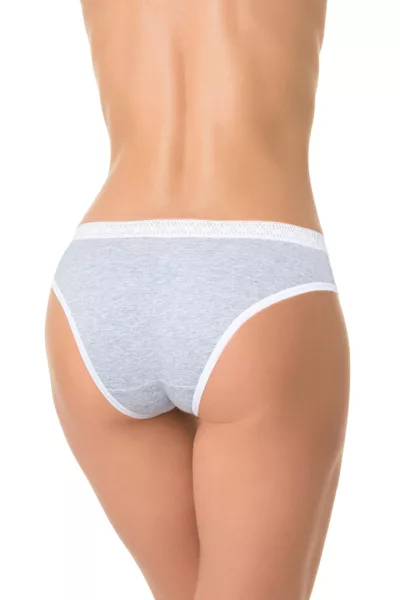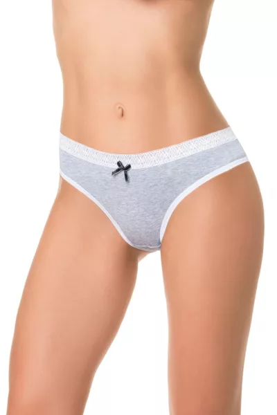 ID товара: 682643, Состав: 95% Хлопок; 5% Эластан, Сезон: Демисезон, Основная ткань: Хлопок, Модель трусов: Слипы, Страна бренда: Россия, Страна производства: Китай Трусы со средней линией талии, выполнены из меланжевого хлопка со спандексом. Вырез ножки обработан контрастной эластичной тесьмой. Талия отделана контрастной широкой кружевной резинкой. Декор - акцентный бантик. Хлопковая ластовица. 1 штука в упаковке. Упаковка - картонная коробочка.
