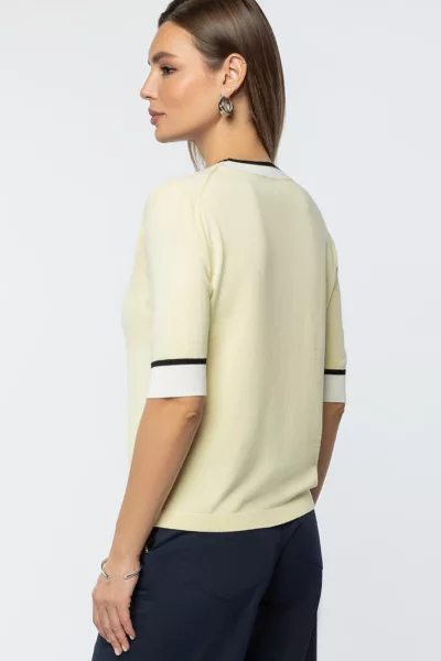 ID товара: 1086535, Состав: 80% Вискоза; 20% Полиамид, Сезон: Демисезон, Длина: Средняя, Фасон: Прямой, Рукав: короткие, Вырез горловины: Округлый, Основная ткань: Вискоза, Стиль: повседневный, Страна бренда: Россия, Страна производства: Китай Джемпер тонкой вязки выполнен из вискозы с нейлоном. Мягкая пряжа приятная к телу дарит настоящий комфорт в любое время года. Модель хорошо сидит по фигуре и впишется в любой гардероб, а продуманное сочетание цветов позволит создать множество образов. Из украшений фирменный логотип бренда.