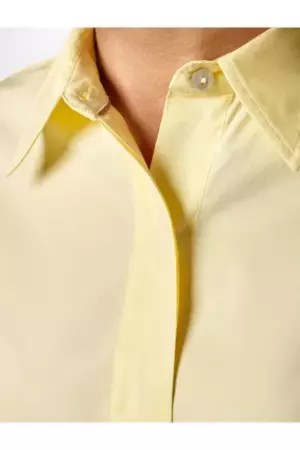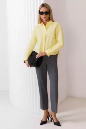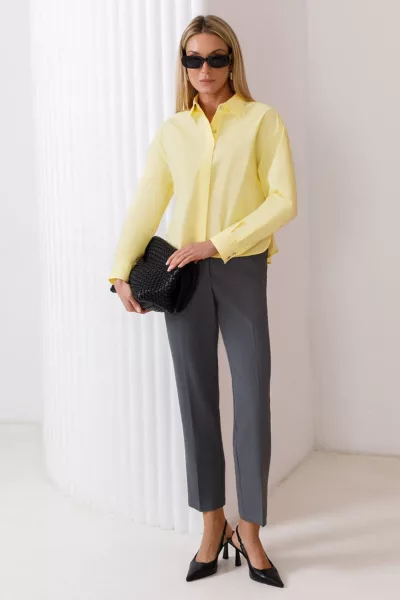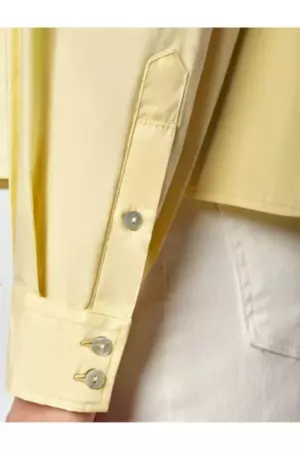 ID товара: 1086515, Состав: 100% Хлопок, Сезон: Весна/Лето, Длина: Средняя, Фасон: Свободный, Рукав: длинные, Вид застежки: Пуговицы, Вырез горловины: Отложной воротничок, Основная ткань: Хлопок, Стиль: классический, Страна бренда: Россия, Страна производства: Китай Блузка в банановом оттенке выполнена из 100% поплина. Укороченная модель с застежкой планкой – идеальное решение для лаконичного образа. Будет одинаково хорошо смотреться с широкими брюками, свободными джинсами, пышной юбкой или кюлотами.