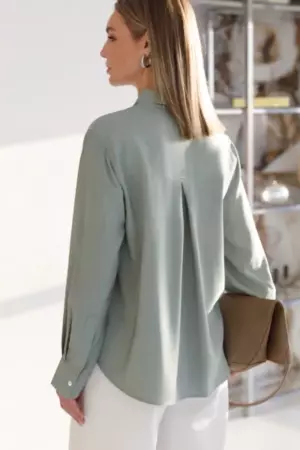 ID товара: 1086511, Состав: 55% Лиоцелл (Вис); 45% Вискоза, Сезон: Весна/Лето, Длина: Средняя, Фасон: Свободный, Рукав: длинные, Вид застежки: Пуговицы, Вырез горловины: Отложной воротничок, Основная ткань: Лиоцелл, Стиль: классический, Страна бренда: Россия, Страна производства: Китай Блузка с отложным воротником и свободными рукавами выполнена из премиальной вискозы и лиоцелла. Лаконичная модель дополнена застежкой на пуговицы из натурального перламутра и фирменым логотипом бренда, расположенным на спинке изделия. Вискоза в составе отвечает за хорошую воздухопроницаемость и поддержание оптимального микроклиматата. Отлично впишется в нестрогий офисный дресс-код или в расслабленный повседневный образ с джинсами и юбками.