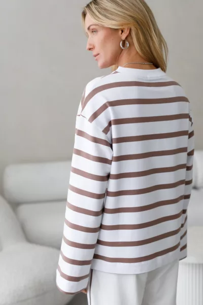 ID товара: 1087628, Состав: 95% Хлопок; 5% Полиуретан, Сезон: Демисезон, Длина: Средняя, Фасон: Прямой, Рукав: длинные, Вырез горловины: Округлый, Рисунок: Полоска, Декоративные элементы: Принт, Основная ткань: Хлопок, Стиль: повседневный, Страна бренда: Россия, Страна производства: Китай Свитшот свободного кроя выполнен из эластичного футера двухнитки. Модель дополнена вышитым логотипом бренда. Свободный силуэт не сковывает движений и подходит для любой фигуры. Наличие эластана в составе гарантирует комфорт и формоустойчивость изделия.