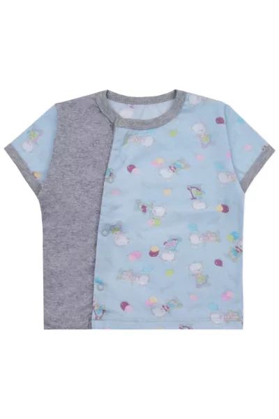 ID товара: 1090911, Состав: 100% Хлопок, Сезон: Весна/Лето, Длина: Средняя, Фасон: Прямой, Рукав: короткие, Вид застежки: Кнопки, Вырез горловины: Округлый, Рисунок: Фантазийный, Декоративные элементы: Принт, Основная ткань: Кулирка, Стиль: повседневный, Страна бренда: Россия, Страна производства: Россия Детская кофточка с короткими рукавами.
