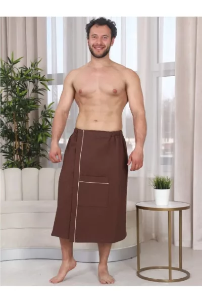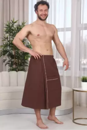 ID товара: 1069942, Состав: Хлопок 100%, Сезон: Демисезон, Основная ткань: Хлопок, Вид ткани: Вафельное полотно, Страна бренда: Россия, Страна производства: Россия Килт банный мужской - полотенце-накидка на липучке для сауны и бани. Материал: вафельное полотно, 100% хлопок. Плотность: 220 г/м2. Набедренная накидка (килт для бани) отлично держится за счет резинки и фиксации на широкую липучку. Килт для мужчин удобно подходит для любой комплекции с 44 по 52 размер, а также с 54 по 60 размер. Накидка для сауны имеет глубокий накладной карман для хранения банных мелочей. Изделие приятно к телу, прекрасно впитывает влагу, быстро сохнет, хорошо переносит частые стирки, отличается долговечностью и прочностью. Это многофункциональный аксессуар, который обеспечит комфорт и удобство, а также гигиеническую защиту во время и после банных процедур. Килт можно постелить на лежак в сауне или использовать в качестве полотенца после душа, он удобен в массажном салоне или на пляже. Это замечательный подарок для мужчины - любителя парной, хаммама, сауны, бани, различных spa - комплексов! Рост модели на фото - 180 см. Размеры 44-52: Длина - 80 см, Ширина 154 см (+/- 1 см) Размеры 54-60: Длина - 80 см, Ширина 166 см (+/- 1 см)