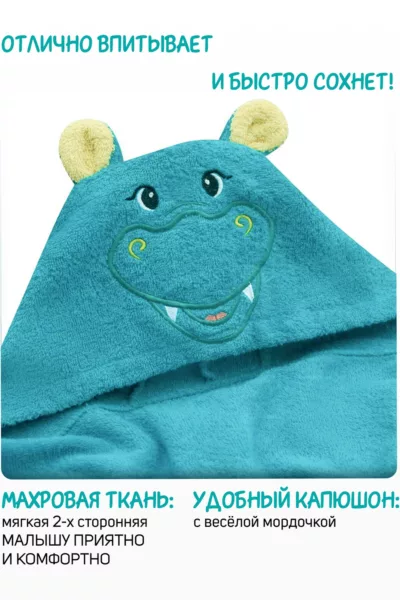 ID товара: 1067715, Состав: Хлопок 100%, Сезон: Весна/Лето, Основная ткань: Хлопок, Вид ткани: Махра, Страна бренда: Россия, Страна производства: Россия Милое детское махровое полотенце изготовлено из мягкого хлопка, который подходит для новорожденных, не вызывает аллергии и отлично впитывает влагу. Уголок с ушками это идеальный вариант для ухода за младенцем. Гипоаллергенный материал с натуральным хлопком в составе быстро сохнет и не вызывает раздражения чувствительной кожи лица и тела. Полотенце с капюшоном большого размера в форме прямоугольника 75х120 см для детей с рождения до 5-6 лет позволяет укутать малыша полностью с макушки до пяточек. Текстильное изделие имеет капюшон, украшенный декоративной вышивкой. Удобный несъемный капюшон с забавной мордочкой держит тепло и помогает быстро высушить волосы. Этот банный аксессуар с оригинальным дизайном понравится всем членам семьи! С ярким смешным полотенцем с мордочкой животных кроха будет с удовольствием умываться и мыть руки самостоятельно. Его можно использовать каждый день как большое полотенце для купания в ванной и душевой кабине или для спортивных занятий по плаванию в бассейне. Подходит как крестильное полотенце, уголок сыну и дочери, любимому крестнику. Применяется как детский плед, хлопковое покрывало в кроватку и коляску, накидка для пляжа от солнечный лучей. Универсальное быстросохнущее полотенце-уголок понравится детям, подросткам и девушкам. Подойдет для ног, его можно повязать в виде тюрбана чалмы после мытья головы и душа дома или в бане. Полотенце для мальчика и девочки подходит всем, кто подбирает товары для новорожденных, памятный подарок молодой будущей маме, молодым родителям на рождение дочки и сыночка, на годик, крестины малыша, девочке на 8 марта, мальчику на 23 февраля, на именины, новоселье, подруге, сестре, внуку, внучке. Это многофункциональный предмет и незаменимый помощник для мамочек и детей для повседневного пользования. Красивый подарок на выписку из роддома для грудничка. Упаковка товара плотная прозрачная сумка с ручками. Производитель ткани для уголков - фабрика Донецкая Мануфактура.