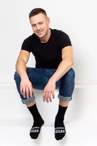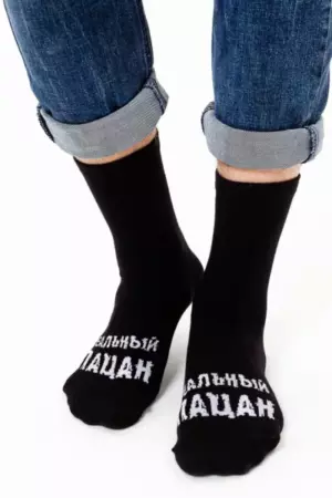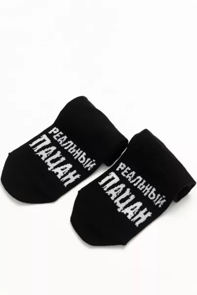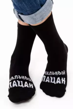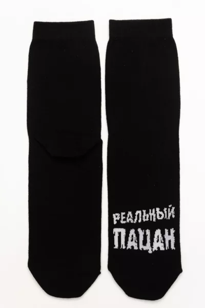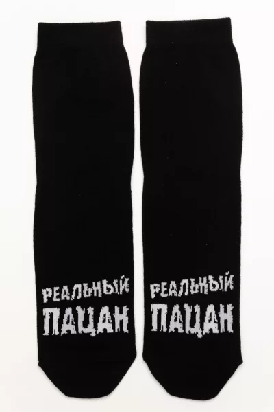 ID товара: 1093564, Состав: 72% Хлопок; 24% Полиамид; 2% Полипропилен; 2% Эластан, Сезон: Демисезон, Основная ткань: Хлопок, Вид носков/гольф: Фантазийные, Вид ткани: Чулочно-носочный трикотаж, Страна бренда: Россия, Страна производства: Россия Мужские носки с надписью в верхней части стопы Реальный пацан. В комплекте 1 пара.