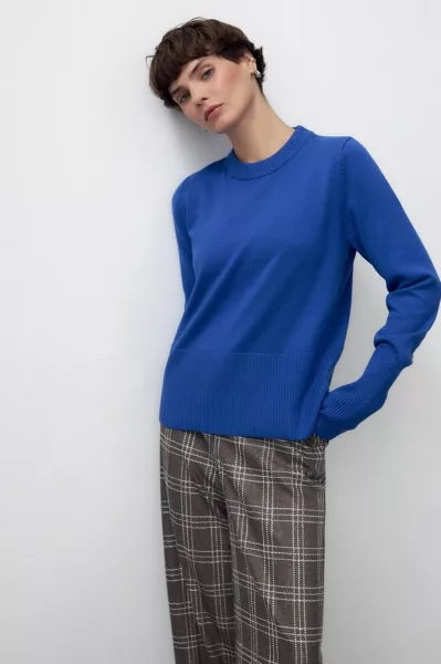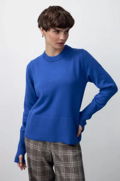 ID товара: 1094272, Состав: Вискоза 51%; Нейлон 22%; Полиэстер 27%, Сезон: Весна/Лето, Длина: Средняя, Фасон: Прямой, Рукав: Длинные, Вырез горловины: Округлый, Рисунок: нет, Основная ткань: Вискоза, Стиль: Повседневный, Страна бренда: Россия, Страна производства: Россия Базовый джемпер эффектного ярко-синего цвета придаст настроение игривости вашему повседневному образу, а такие милые детали, как разрезы на манжетах для большого пальца, согреют ваши кисти рук в этот прохладный период.