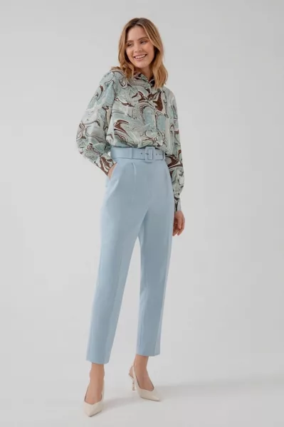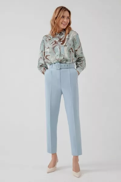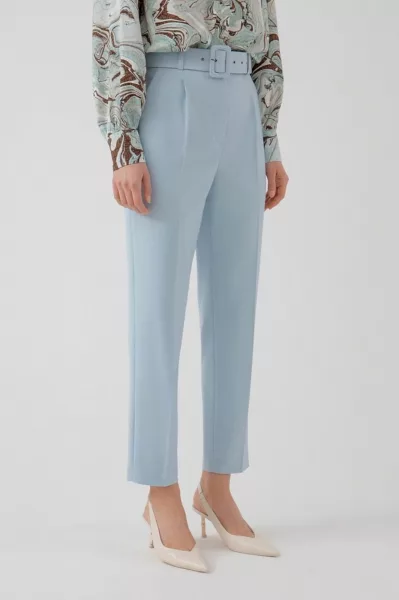 ID товара: 1094263, Состав: Полиэстер 65%; Вискоза 32%; Эластан 3%, Сезон: Весна/Лето, Длина: Длинные, Фасон: Прямые, Вид застежки: Молния; пуговица; + Крючок, Рисунок: нет, Тип карманов: Втачные, Декоративные элементы: Пояс; шлевки, Основная ткань: Полиэстер, Стиль: Деловой, Страна бренда: Россия, Страна производства: Россия Брюки со стрелками прямого силуэта из костюмной ткани пыльно-голубого цвета на притачном поясе со шлевками. Застежка спереди на молнию, брючный крючок и пуговицу. Есть обтяжной пояс из основной ткани. На задней части брюк два прорезных кармана.