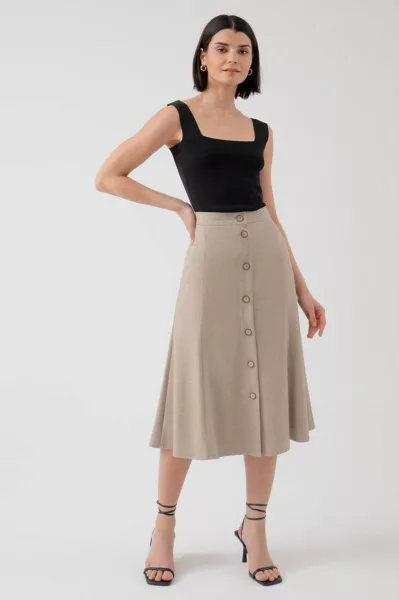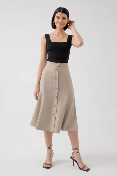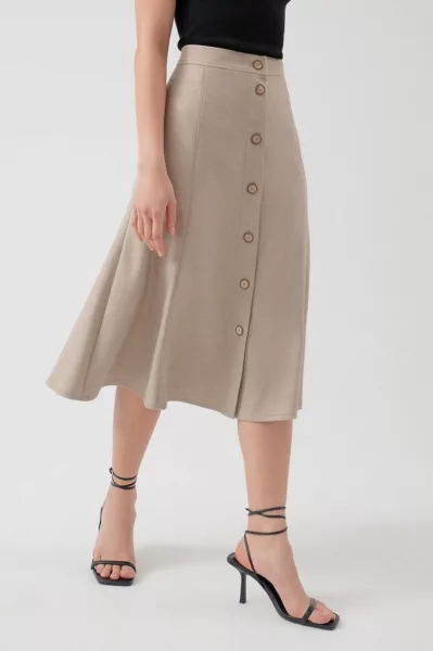 ID товара: 1095055, Состав: Полиэстер 63%; Вискоза 34%; Эластан 3% Подкладка- Полиэстер 100%, Сезон: Весна/Лето, Длина: Миди, Фасон: Повседневный, Вид застежки: Пуговицы, Рисунок: нет, Основная ткань: Полиэстер, Стиль: Повседневный, Страна бренда: Россия, Страна производства: Россия Юбка годе из костюмной ткани в стиле сафари, с планкой по переду и большими роговыми пуговицами.