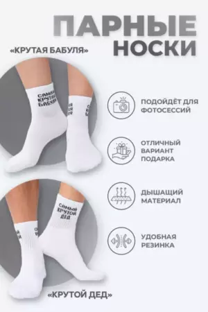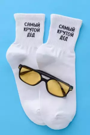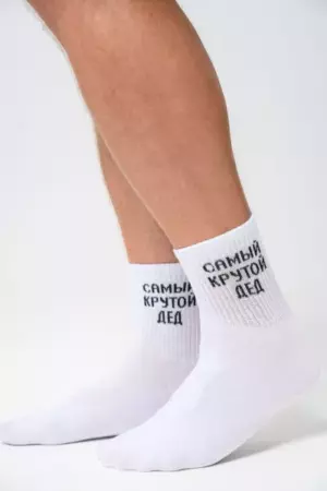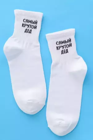 ID товара: 1095091, Состав: 77% Хлопок; 21% Полиамид; 2% Эластан, Сезон: Демисезон, Основная ткань: Хлопок, Вид носков/гольф: Фантазийные, Вид ткани: Чулочно-носочный трикотаж, Страна бренда: Россия, Страна производства: Россия Комплект мужских носков одна пара. Широкая резинка по всей верхней части носка. На резинки надпись самый крутой дед