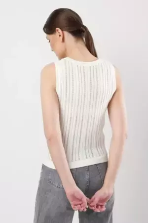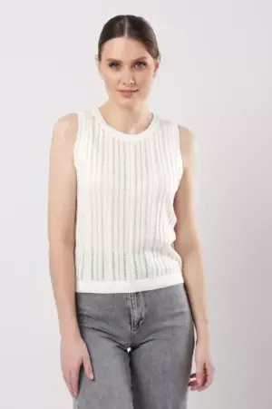 ID товара: 1099698, Состав: 50% Хлопок; 50% Акрил, Сезон: Осень/Зима, Длина: Средняя, Фасон: Полуприлегающий, Рукав: Без рукавов, Вырез горловины: Округлый, Рисунок: нет, Основная ткань: Хлопок, Стиль: Базовый, Страна бренда: Россия, Страна производства: Россия Вязаный топ прямого кроя из хлопковой пряжи с добавлением акрила, ажурного переплетения. Округлая горловина, среднее плечо. По горловине и пройме обтачки ластичного переплетения.