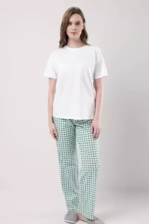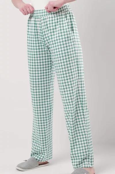 ID товара: 1099692, Состав: 100% Хлопок, Сезон: Осень/Зима, Длина: Длинные, Фасон: Прямые, Вид застежки: Без застежки, Посадка: Средняя, Рисунок: Клетка, Основная ткань: Хлопок, Стиль: Повседневный, Страна бренда: Россия, Страна производства: Россия Брюки прямые для дома из хлопкового трикотажного полотна. Пояс на внутренней резинке, боковые карманы с отрезным бочком.