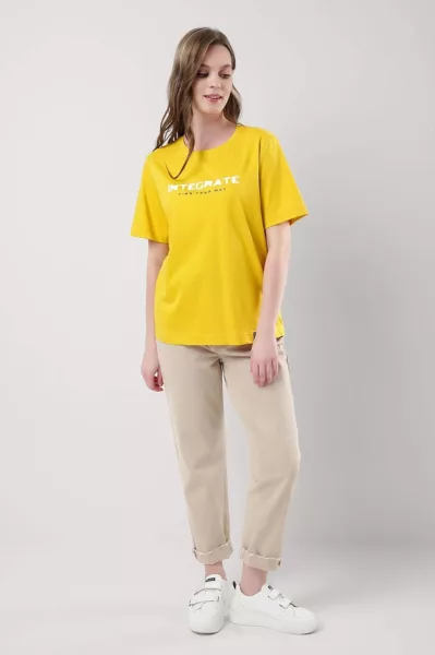 ID товара: 1099675, Состав: 100% Хлопок, Сезон: Осень/Зима, Длина: Средняя, Фасон: Прямой, Рукав: Короткие, Вырез горловины: Округлый, Рисунок: Надпись, Декоративные элементы: Нашивка, Основная ткань: Хлопок, Стиль: Спортивный, Страна бренда: Россия, Страна производства: Россия Футболка для дома из хлопкового трикотажного полотна прямого силуэта. Короткий втачной рукав. Округлая горловина с обтачкой. Спереди принт, нашивка.
