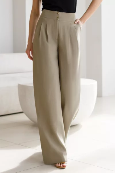 ID товара: 1102983, Состав: 70% Лиоцелл (Вис); 30% Полиэстер, Сезон: Весна/Лето, Длина: Полная, Фасон: Широкие, Вид застежки: Пуговицы, Посадка: Высокая, Тип карманов: С отрезным бочком, Основная ткань: Лиоцелл, Стиль: классический, Страна бренда: Россия, Страна производства: Китай Брюки выполнены из плотного лиоцелла. Модель дополнена карманами и высоким поясом на пуговицах. Ткань изделия отлично держит форму, плавно драпируется и не просвечивает. В теплое время года приятно охлаждает кожу. Добавление синтетических волокон в составе изделия, предотвращает сминаемостьи поддерживает формоустойчивость. Брюки сочетаются в костюме с топом D23.063 и блузкой D29.266, D29.267 и жилетом D27.002