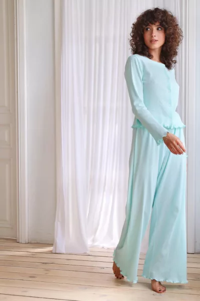 ID товара: 1040903, Состав: 100% Хлопок, Сезон: Демисезон, Длина: Полная, Фасон: Свободный, Основная ткань: Хлопок, Страна бренда: Россия, Страна производства: Россия Брюки домашние из ажурного трикотажа