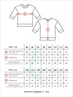Свитшот большого объема. Линия плеча спущенная, длинный рукав. Горловина обработана обтачкой. Спереди по центру – накладной карман. Рукава и низ изделия обработаны манжетами.