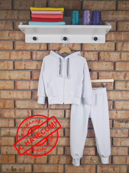 Толстовка свободного объема, прямого силуэта. Рукав покроя реглан. Горловина обработана капюшоном на подкладе. Спереди по центру – застежка-молния. Рукава и низ изделия обработаны манжетами. Накладные карманы, шнурки. Брюки среднего объема, немного заужены к низу. Широкая резинка в поясе. Низ изделия обработан манжетами. Размеры от 140 и выше дополнены боковыми карманами. Размер соответствует росту ребенка. Обращаем Ваше внимание! Цена меняется в зависимости от выбранного размера.