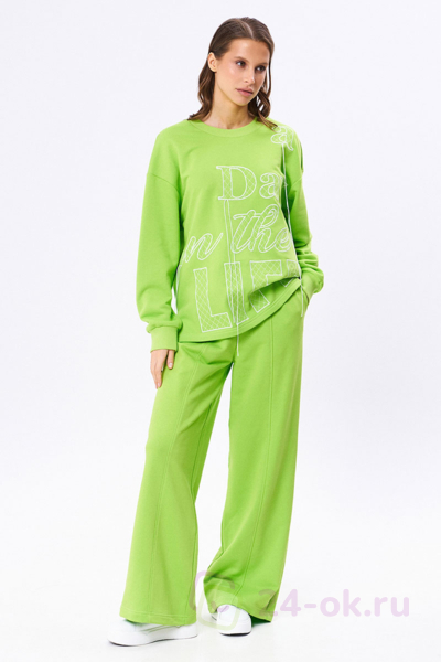 Объёмный джемпер из футера 3-нитки с довязами на манжетах и по горловине. По переду контрастная вышивка.