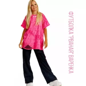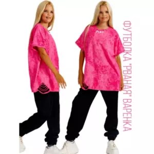 Футболка "варенка" рваная удлиненная PLAY (фуксия)