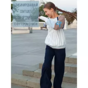 Сочетание футера (3 нити без начеса) и машинной вязки- это смелое решение. Такой свитшот в вашем гардеробе дополнит любую вещь и придаст образу нотку экстравагантности.