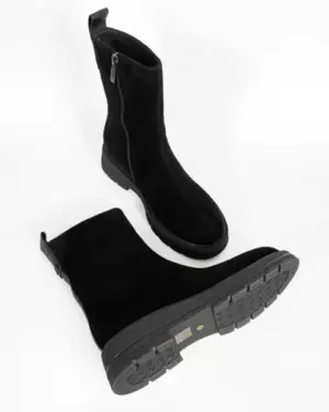 Ботинки женские Зима Замша натуральная Мех натуральный Цвет черный