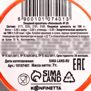 Краситель неоновый KONFINETTA, оранжевый, 7 г.