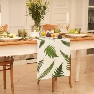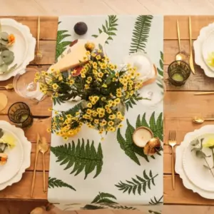 Дорожка на стол Этель «Папоротник» 40×146см, репс 220 г/м², 100% хлопок, белая/зелёная