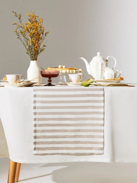 Дорожка на стол Этель Soprano 40×146 см, лен 100%, 180 г/м², белая/серая