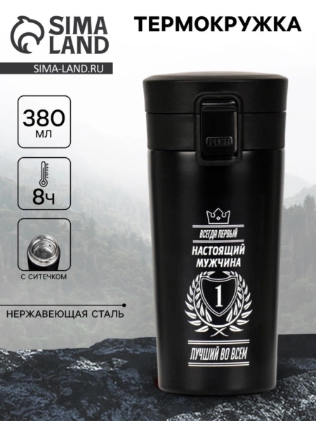 Термокружка с ситечком «Всегда первый» 380 мл, сохраняет температуру до 8 ч.