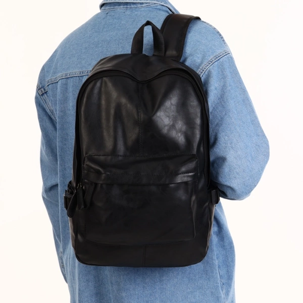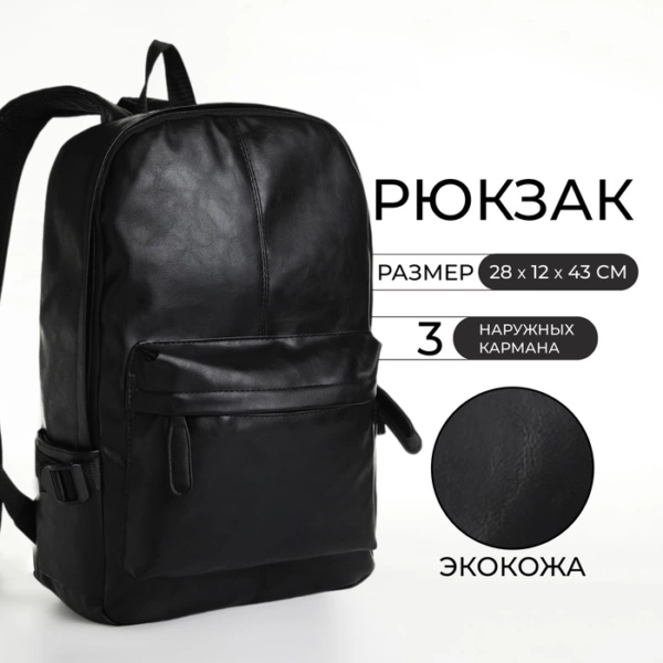 Рюкзак школьный из искусственной кожи на молнии, 3 кармана, цвет чёрный