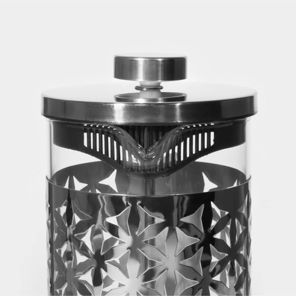 Стеклянный френч-пресс хорошо держит тепло, раскрывает вкус любимых напитков. Материал не вступает в реакцию с жидкостью, не не впитывает запахи и не окисляется. Металлический поршень и рельефный каркас из нержавеющей стали обеспечивают прочность изделия.
