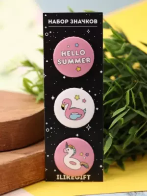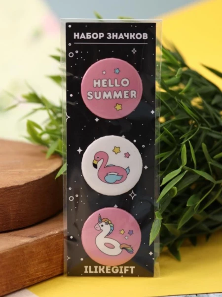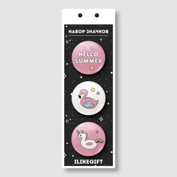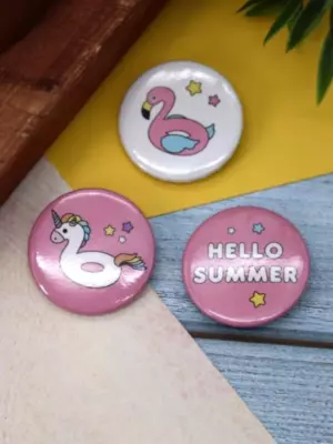 Стильный, яркий и запоминающийся набор значков с дизайнерскими принтами. Значки выполнены из металла с нанесением глянцевой ламинации.
