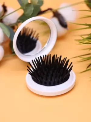 Компактная складная расческа с зеркальцем украшена милым изображением. Благодаря своему небольшому размеру, она легко помещается в карман или сумку, что делает её идеальной для использования в дороге. В комплекте встроено зеркало, что позволяет не только быстро расчесать волосы, но и поправить макияж.