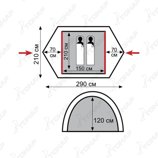 Два входа обеспечивают превосходную вентиляцию и комфортный сон в теплое время года.