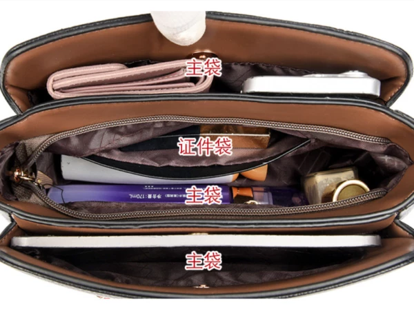 Внутри: 3 независимых отделения, среднее из которых на молнии, крайние отделения закрываются на кнопку-магнит.