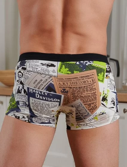Трусы боксеры мужские с оригинальным газетным принтом, из натурального хлопка с добавлением эластана, повышающий прочность и качество одежды, создавая идеальное облегание фигуры. Имеют среднюю посадку, мягкую и эластичную открытую резинку по талии с фирменным логотипом, профилированный гульфик. Модель полностью закрывает ягодицы и немного опускается на бедра, не ограничивает движения и обеспечивает комфорт в течении всего дня. Подходят как для ежедневного ношения, так и для занятий спортом. Рекомендуется бережная стирка при 30С.