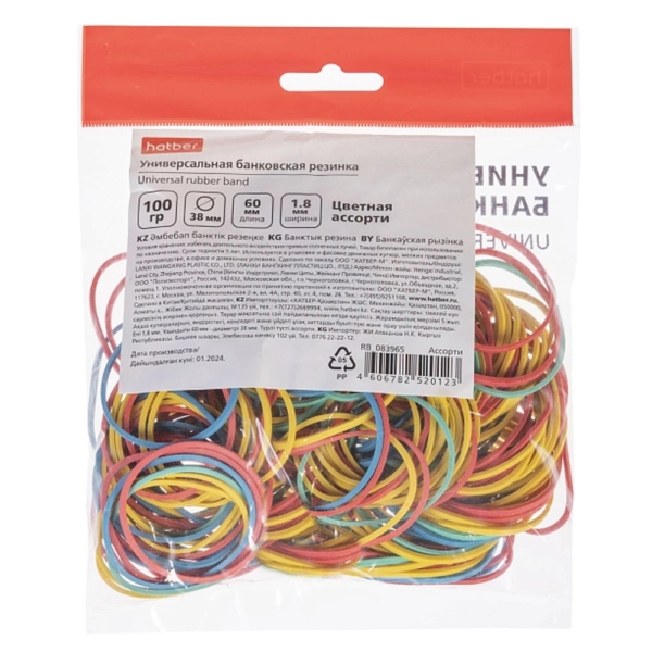 Резинка банковская, Хатбер, вес 100 гр, размер 60 мм, цвет ассорти