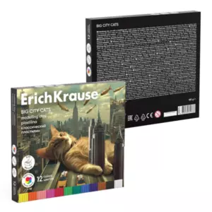 Пластилин 12 цветов ErichKrause Big City Cats, 180 грамм, со стеком