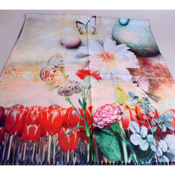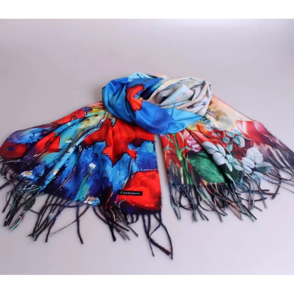Изысканный женский палантин с изображениями картин известных художников, двухсторонний. Состав 50% кашемир,50% бамбук. Размер 70*185 см