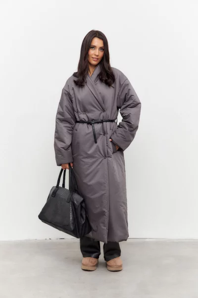 Пальто двубортное, с застежкой на кнопки. Рукав спущенный. Пальто на синтепоне. В комплекте съемный пояс. Состав ПЭ 100% |